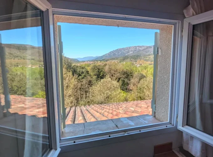 Set just a 2-minute drive from the renowned spa town of Lamalou-les-Bains, this charming detached property offers space, character, and truly breathtaking views across the valley and surrounding mountains.