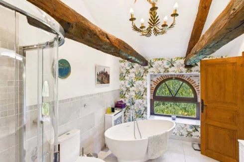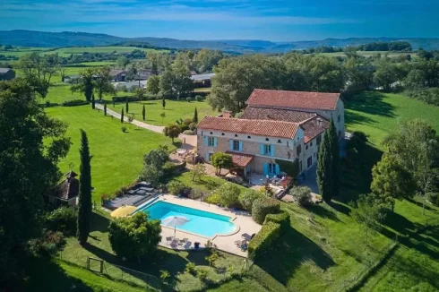 Stunning 10 acre country estate with manor house, indepdendent guest house and a substantial outbuilding that offers the potential to create more space. Views stretch across the surrounding countryside and a private driveway winds its way through the grounds down to the house house, the landscaped gardens and a large swimming pool. Situated near Laguépie with it’s pretty riverside beaches, choice of restaurants and train station.
