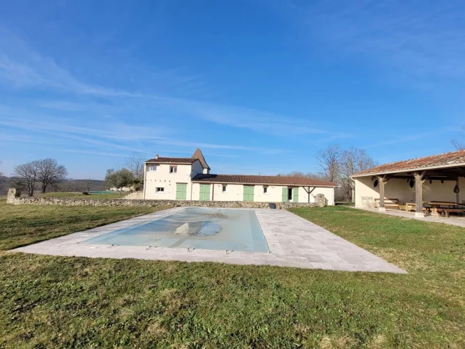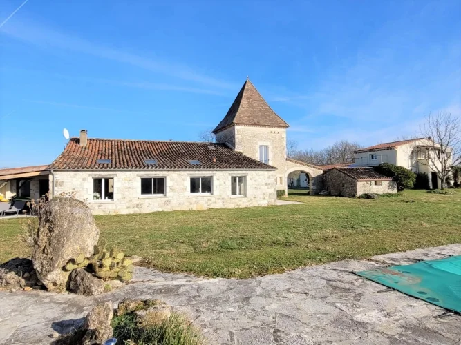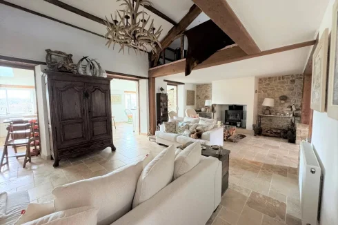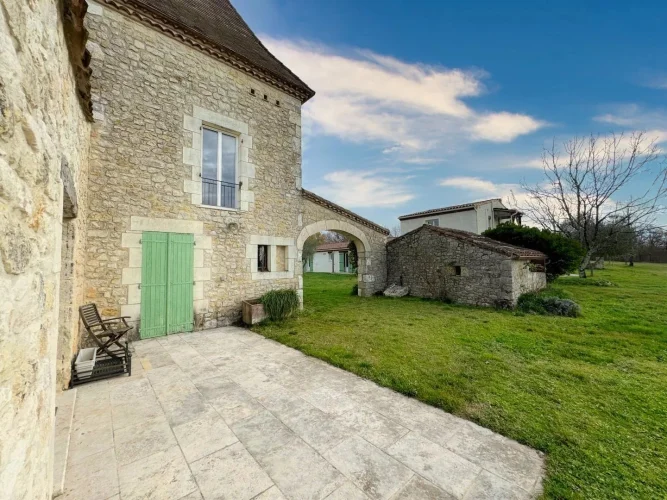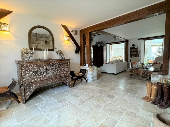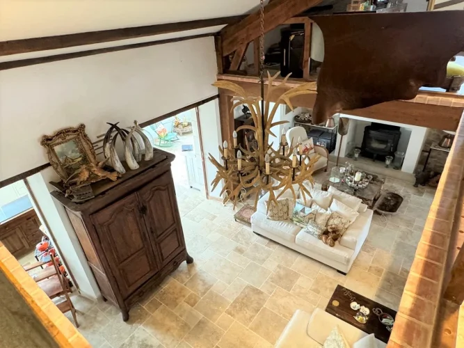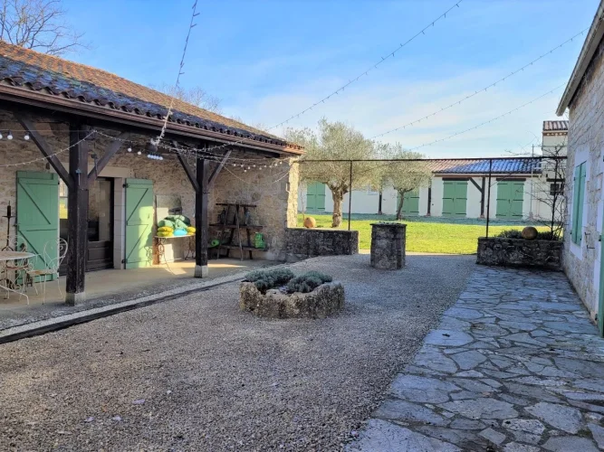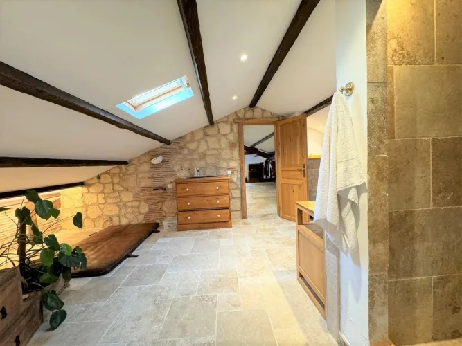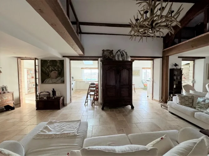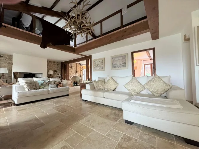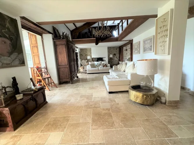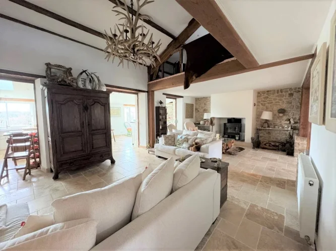 This magnificent stone property complex, entirely renovated with great care, comprises a main house (280m²), a former stable (approx. 199m²), a former barn (171.5m²), an independent guest room (17m²), a flat (67.5m²), a garden shed with storage space and its covered terrace housing a sauna and spa, as well as 2 swimming pools with a pool house.