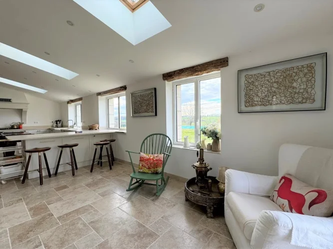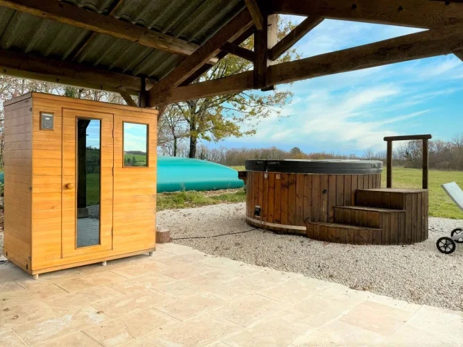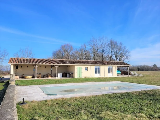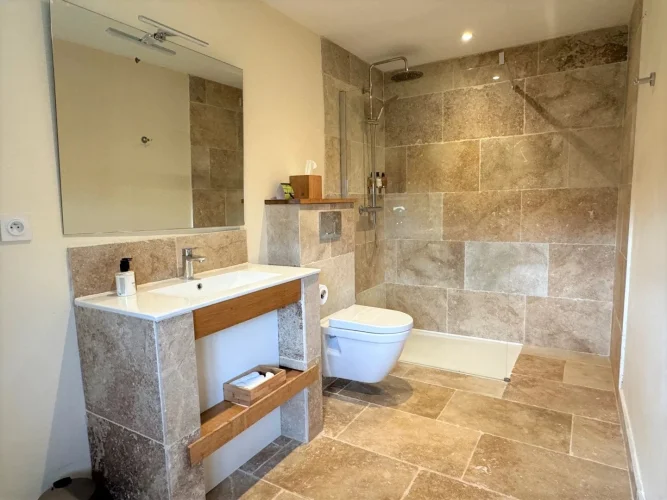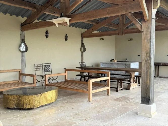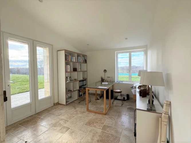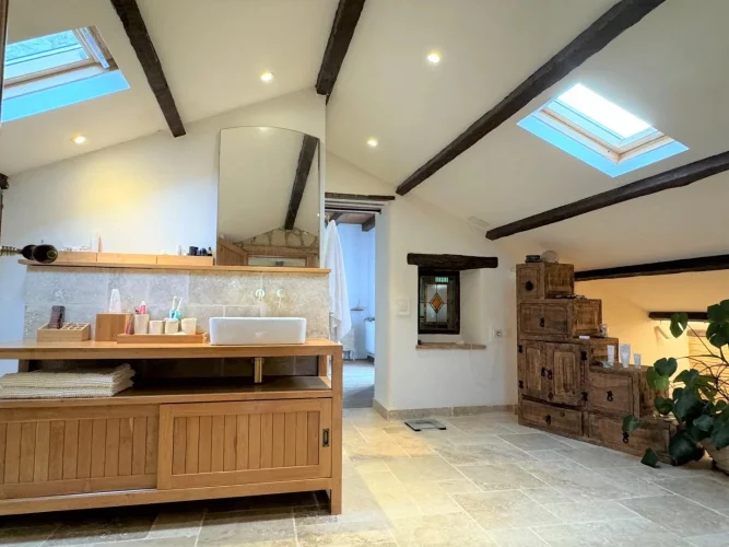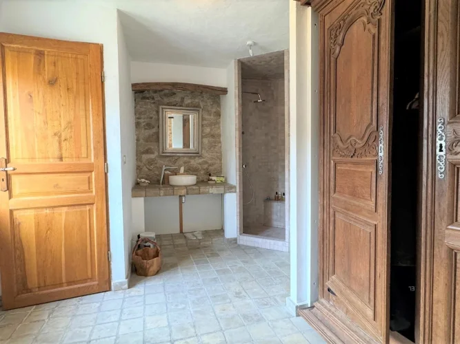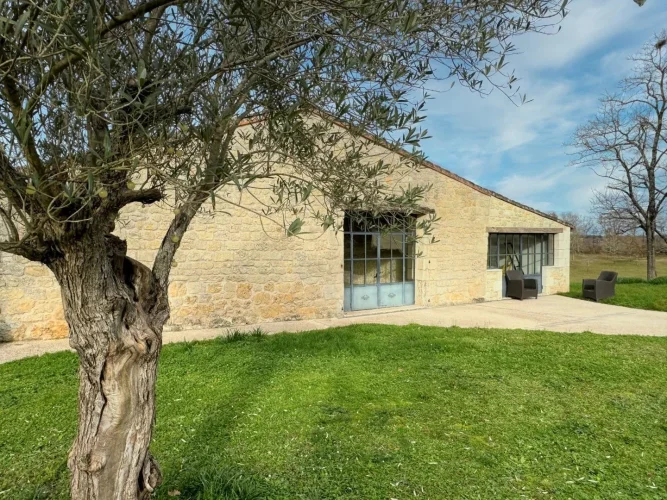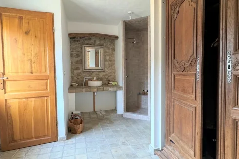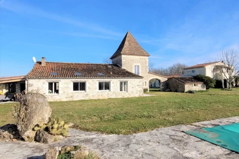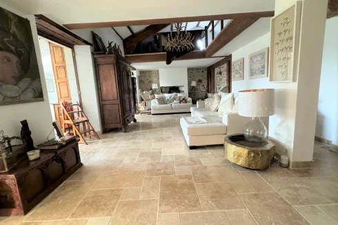 This magnificent stone property complex, entirely renovated with great care, comprises a main house (280m²), a former stable (approx. 199m²), a former barn (171.5m²), an independent guest room (17m²), a flat (67.5m²), a garden shed with storage space and its covered terrace housing a sauna and spa, as well as 2 swimming pools with a pool house.