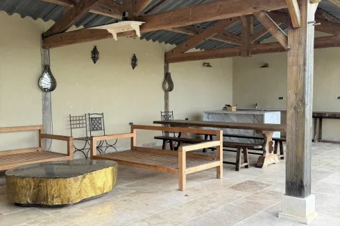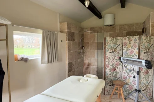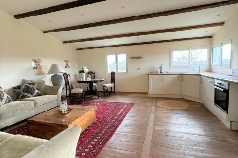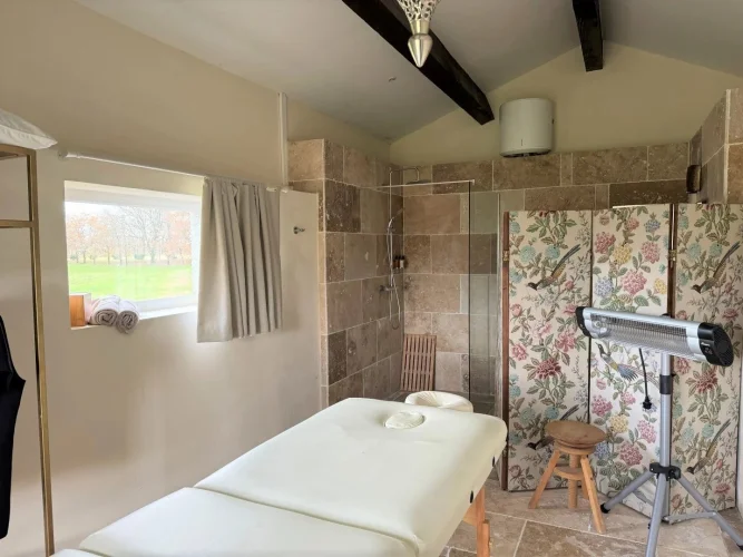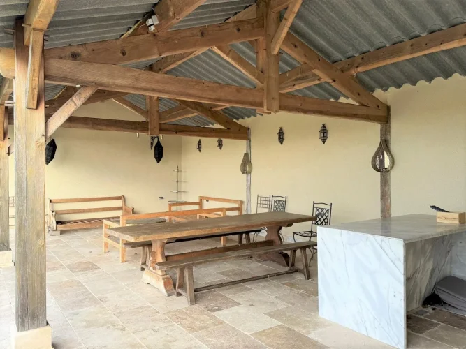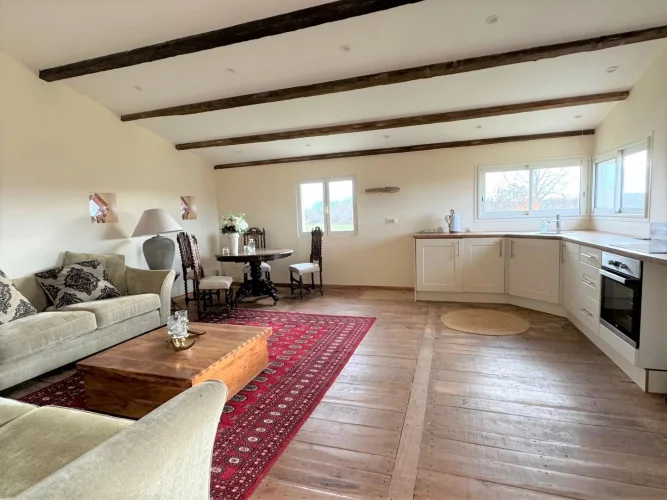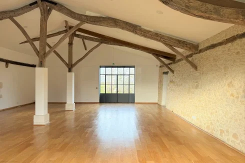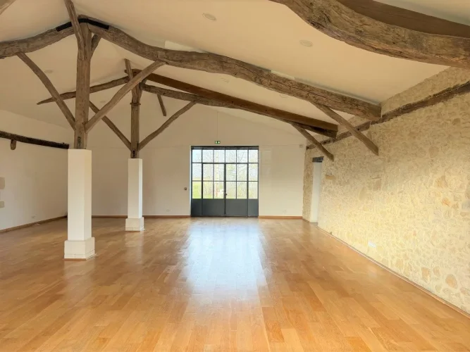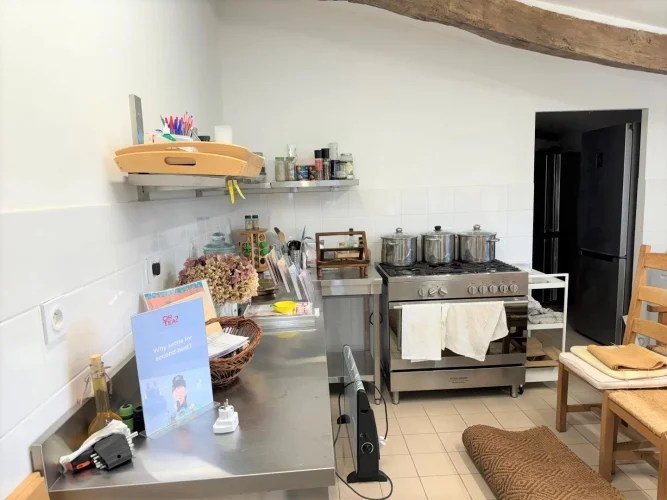 The former barn is divided into 2 areas, with a large 121 m² yoga/dance/art studio and a 50 m² dining area equipped with a professional kitchen.