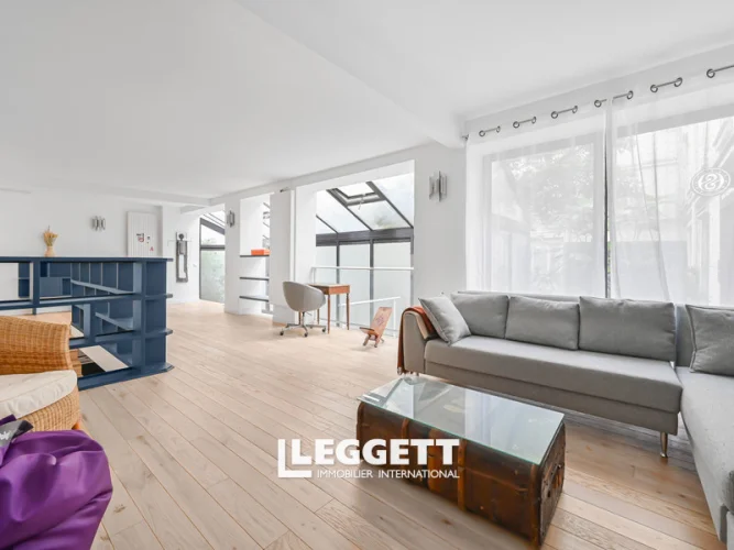 75010, 6P (T6) detached house for 205m2 on the ground floor of a wooded courtyard in a 1780 building - PARIS 10e - Métro Poissonnière - 6 Rooms (T6) - 204 m2 - Class E energy label - See 360 visits, and map - Between Square Montholon and Saint Vincent de Paul church. In a beautiful wooded courtyard of a building dating from 1780. A detached house with a floor area of 225 m2. On the first floor, you'll find a beautiful entrance hall with bay window, a lounge area and a guest toilet. The 1st floor features three bedrooms, a bathroom and WC. On the intermediate floor downstairs, an open-plan fitted kitchen and dining area. The atypical vaulted cellar space includes a TV room, another bedroom, a bathroom, an office and a storage room.