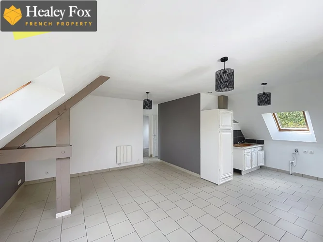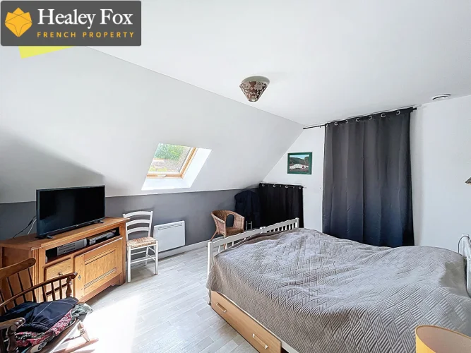Separate two-bedroom apartment above the garage, with a living room, fitted kitchen area, two bedrooms, shower room, and toilet. Ideal for rental income or hosting family and friends.