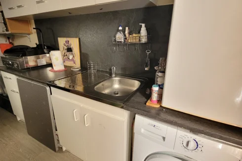 Ground = Entrace onto shared hallwayhall giving access to a 7 m2 private equipped summer kitchen (wall units and base units, sink, fridge, mini-oven, washing machine) with access to an attractive 13 m2 private courtyard.