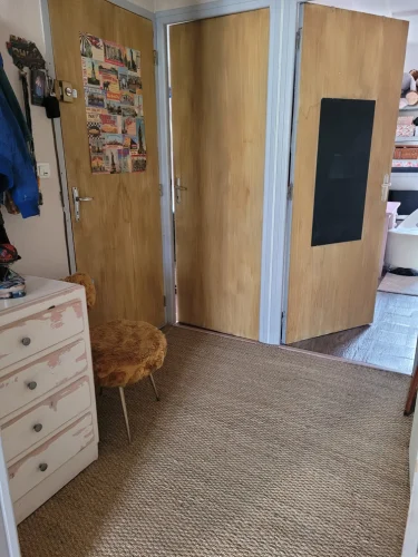 2nd = 3.6 m2 entrance hall + 22 m2 living room/equipped kitchen (wall and floor units, stove, fridge/freezer, sink) with French windows and balcony + 10.9 m2 bedroom with dressing room + 9.1 m2 bedroom with built-in wardrobe + shower room of 3 m2 (shower, basin and WC).