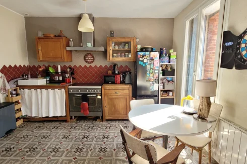 Located on the second floor of an old maison de maitre, this character apartment with 48 m2 of living space, including 2 bedrooms, features authentic character and a privileged location in the center of the village. The ground floor features a summer kitchen opening onto a pleasant 13 m2 private courtyard, ideal for outdoor meals or moments of relaxation.