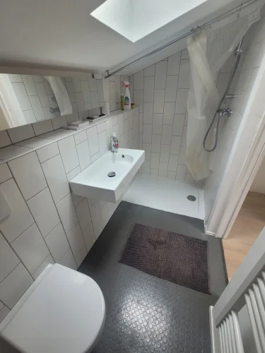 1st (wing A) = 23 m2 bedroom with sloping ceiling and en-suite 3.1 m2 shower room (shower, washbasin, toilet).