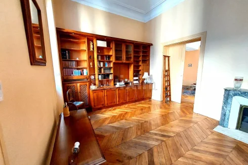 Combining old-world charm with modern comfort, it features parquet floors, moldings, and high ceilings. It includes four bedrooms, a library, a bright living room, a large, fully equipped kitchen, and two bathrooms.