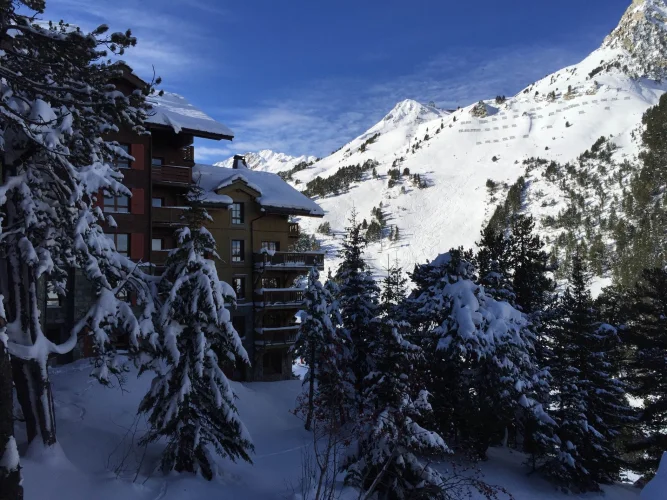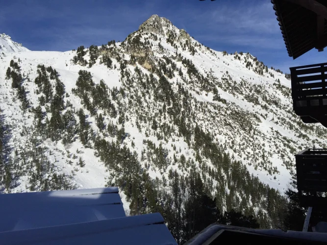 The apartment has a 4.57m2 deep south-west facing balcony with fantastic views looking out over the Paradiski slopes.