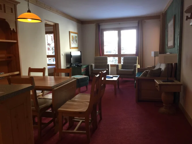 The central dining table has a fold-down ‘leaf’ allowing the apartment to seat six for meals comfortably and providing more living room space when not in use. The living area itself has a light and breezy 'Scandinave' design with large south-westerly facing windows. The sofa folds out into a large double sofa-bed, allowing the apartment to sleep six in comfort. The double bedroom has an en-suite bathroom with bath and WC and the twin bedroom has a separate shower room and WC room opposite –giving easy access for both the twin room and guests using the sofa-bed.