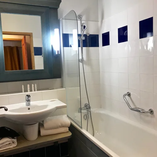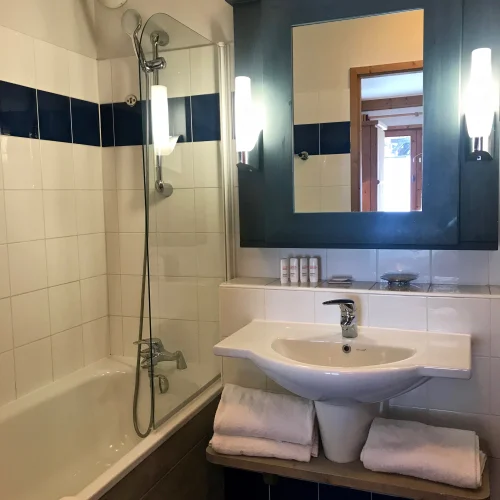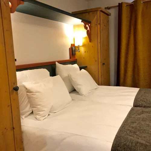 With 55.33 m2 of habitable space, this apartment has a thoughtful layout with each bedroom positioned either side of the living room. The double master bedroom has its own ensuite bathroom, and the spacious twin has a separate bathroom and W.C. There is a sofa bed in the living room, allowing the apartment to comfortably sleep 6 people. This apartment also benefits from a cave which is double the normal size.