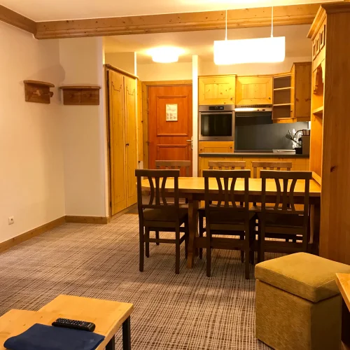 This is a fantastic 2 bedroom apartment situated in the quiet Source de Marie building, away from the hustle and bustle of the centre of the village. The apartment is located on the ground floor with direct access to 3 ski lifts. Owners also benefit from being able to ski directly to the back door after a long day on the slopes. The large terrace is South facing and perfect for unwinding in the evening sun. Additionally, the apartment has immediate access to a whirl pool and mini gym just along the hallway plus a luxury “Deep Nature” spa also located in the building.