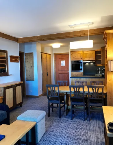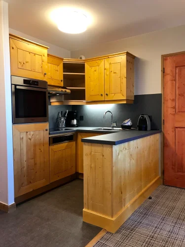 The apartment gives truly fabulous north-easterly views over the pistes of the Bois de l’Ours and also down the valley to the peaks of Mont Blanc. The balcony is 4.3m2; ample space for an apres-ski glass of local Savoie wine in the setting sun.