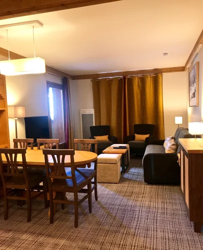 Sources de Marie holds one of the most tranquil positions in the village of Arc 1950, away from the hustle and bustle of the centre square. The relaxing effect of this location is enhanced by the residence’s central spa facilities, which include a large indoor Jacuzzi, sauna and hammam steam baths. Each apartment has cable TV and free internet access, as well as an owner’s store cupboard, an extra storage ‘cave’ in the basement and a ski locker in the boot room. Sources de Marie has free allocated parking in the underground car park and free use of the heated pools at the Princes Des Cimes apartment block.