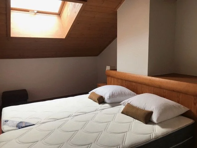 Upstairs, this duplex has an equally pleasing layout: a spiral staircase leads to a corridor, leading past the two twin rooms, both generous in size with decent storage spaces, and culminating in the master bedroom: a very large double room with en-suite bathroom, mini lounge area under the eaves, and sunny southern views. The twin rooms share the separate shower room and WC across the corridor and one of them have skylights, letting the sun in all day long.