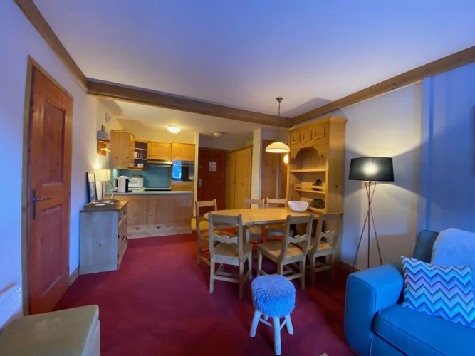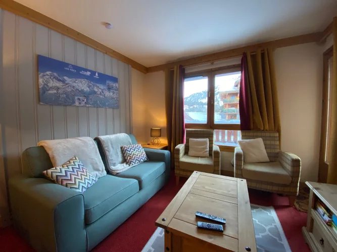 The apartment is located on the ground floor of the building Sources de Marie, with very easy access to the outdoor and the 2 balconies with views of the Mont Blanc. This part of the village is very quiet and the apartment is overlooking the nursery slopes for the little ones.