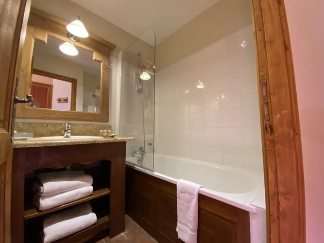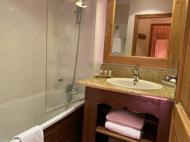 Apartments in Refuge du Montagnard benefit from the use of an indoor pool, a heated outdoor pool, jacuzzi, gym, sauna, and steam room. Additional to the very large owner’s store cupboard within the apartment, this apartment has a ‘cave’ in the basement, and 2 ski lockers in the boot room. All apartments in Refuge du Montagnard have cable TV, Wifi, and free of charge allocated parking in the underground car park.