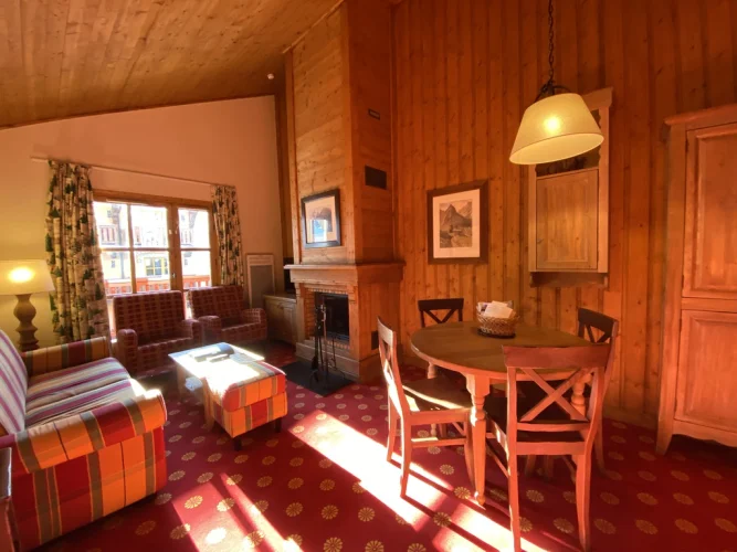 The two apartments both benefit from a modern fully fitted kitchen, connected to an open-planned dining/living area. Each living room has a fireplace and access to a separate South-East facing 5.33m2 balcony. The two apartments have one double bedroom each and also a separate bathroom and WC. They can comfortably sleep 8 people due to the pull-out sofas in the living rooms.