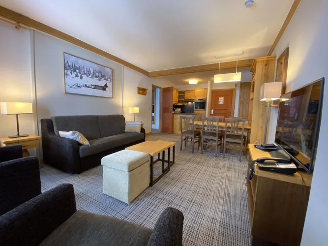 Sources de Marie holds one of the most tranquil positions in the village of Arc 1950, away from the hustle and bustle of the centre square. The relaxing effect of this location is enhanced by the residence’s central spa facilities, which include a large indoor Jacuzzi, sauna and hammam steam baths. Each apartment has cable TV and free internet access, as well as an owner’s store cupboard, an extra storage ‘cave’ in the basement and a ski locker in the boot room. Sources de Marie has free allocated parking in the underground car park and free use of the heated pools at the Princes Des Cimes apartment block.