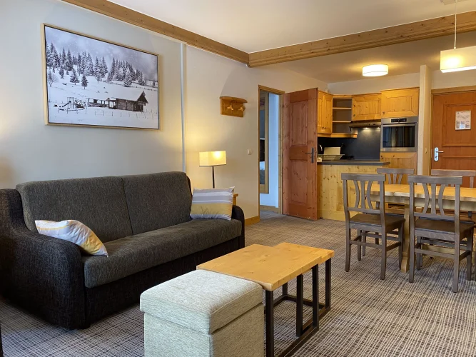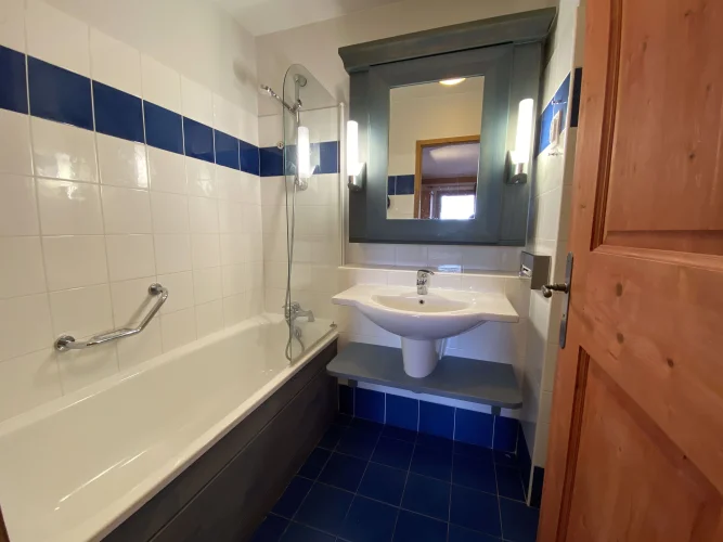 This is a charming 2 bedroom apartment of 60.29m2 of habitable living space, that benefits from a fully fitted and well equipped kitchen and an open-planned dining/living area from which you can access the 4,6m2 North-West facing balcony. The apartment has one master bedroom with en-suite bathroom and one twin bedroom with access to a separate bathroom and WC and can comfortably accomodate up to 6 people thanks to the pull-out sofa in the living room.