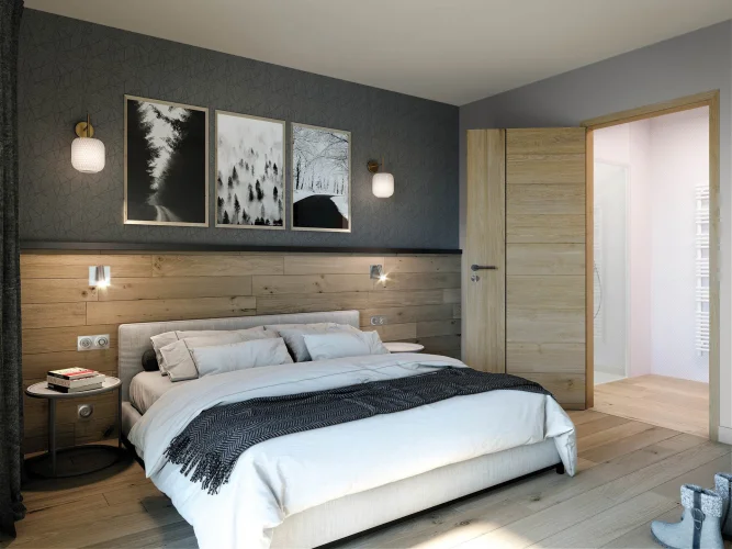 Located at the heart of the Quartier Vieil Alpe, Les Fermes d’Alpe is inspired from traditional architecture based on mountain farmhouses. The mountain DNA and blood rushes through the choice of materials used for the buildings, stone and wood, clean and pure lines against the background, large bay windows to get the best views with natural light creating a mix of traditional style and modern benefits.