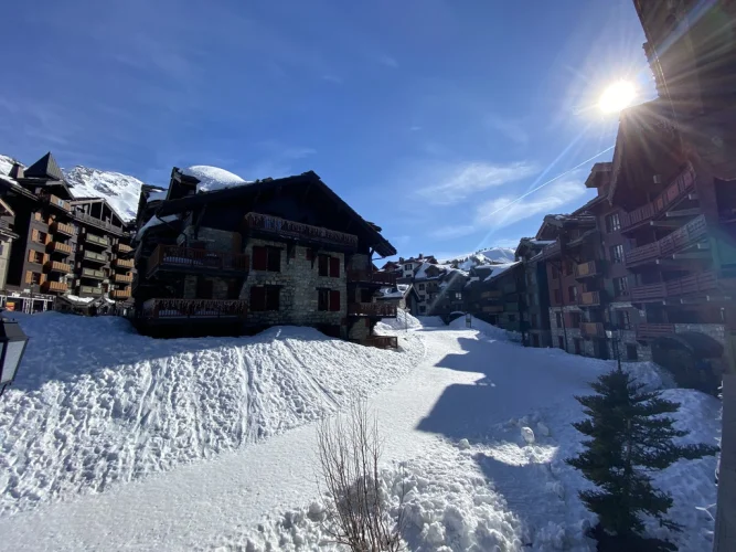 Sources de Marie holds one of the most tranquil positions in the village of Arc 1950, away from the hustle and bustle of the centre square. The relaxing effect of this location is enhanced by the residence’s central spa facilities, which include a large indoor Jacuzzi, sauna and hammam steam baths. Each apartment has cable TV and free internet access, as well as an owner’s store cupboard, an extra storage ‘cave’ in the basement and a ski locker in the boot room. Sources de Marie has free allocated parking in the underground car park and free use of the heated pools at the Princes Des Cimes apartment block.