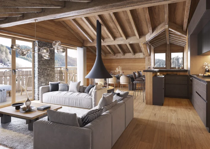 The Savoyard mountain chalet architecture is reflected with a combination of traditional and modern appearance. The mix of wood and stone gives the chalet an overall solid and warm look, inviting you inside to enjoy the atmosphere and the features of a top quality family oriented property. The design is centred on receiving natural light with numerous openings to benefit from the sunshine and the views. A residence with only 19 apartments, Cottage Alpin privileges day-to-day comfort in intimate surroundings.