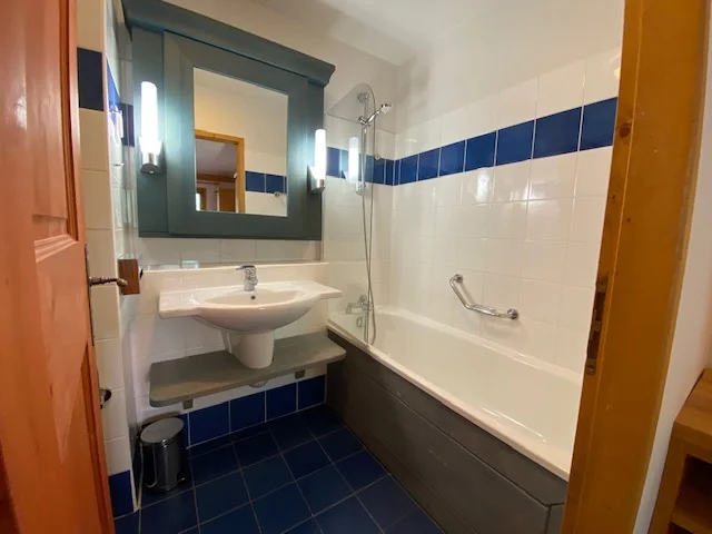 This is a charming 2 bedroom apartment of 60.71m2 of habitable living space, with a spacious open-plan living room that can comfortably accommodate up to 6 people thanks to the pull-out sofa. The apartment benefits a fully fitted and well equipped kitchen and a dining area with a convenient fold down leaf allowing more space when not set up for family meal times! From the living room you can access the 4,88m2 West-facing balcony. The apartment has one master bedroom with en-suite bathroom and one twin bedroom with access to a separate bathroom and WC.