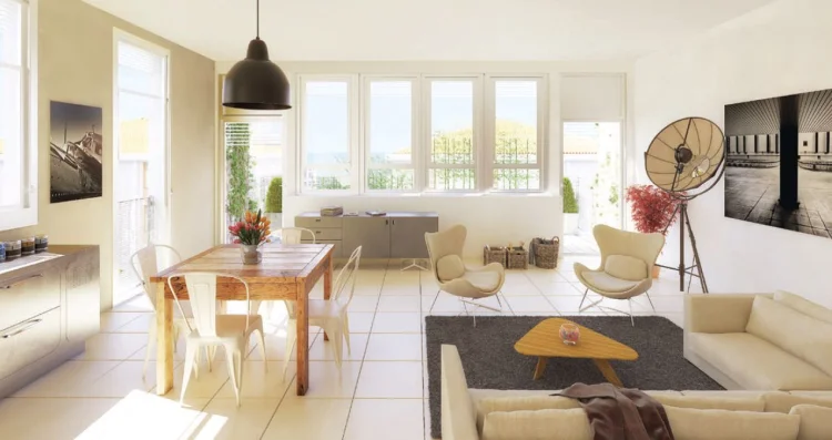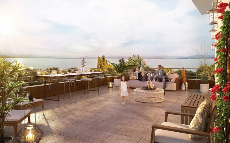 Royal Mateirons, in Evian-les-Bains, comprises 73 apartments spread over 2 buildings. This French property for sale has apartments ranging from 2 to 3-beds and from 36 m2 to 105 m2. All the apartments have balconies, loggia or generous terraces that all have a magnificent view of the lake or the French and Swiss Alps. The building layout takes into account the surrounding terrain and has been designed to open up a view of the or lake or garden.