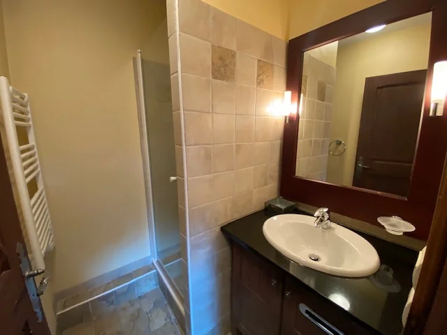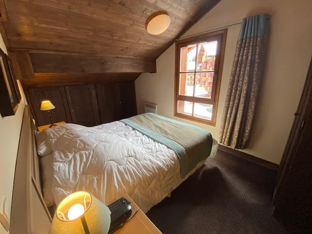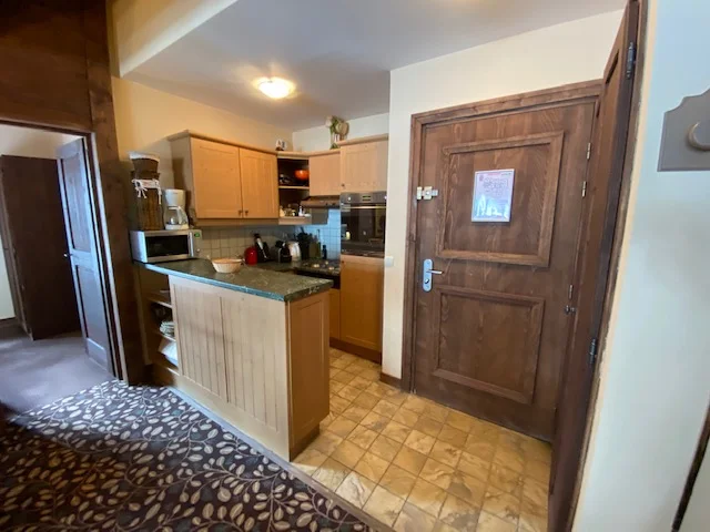 This spacious 2-bed apartment is located on the top floor of Manoir Savoie. This French property for sale has fantastic views of both the south and east. The apartment has the luxury of being beneath the eaves of the building, giving it high ceilings and exposed beams. The living and dining areas are open planned with a fireplace making the apartment feel spacious and warm. There are large French doors that can be opened out onto the south facing balcony which is perfectly designed for you to enjoy to the magnificent views and morning sunshine. The apartment also has two bathrooms, one of which is an en-suite to the master bedroom.
