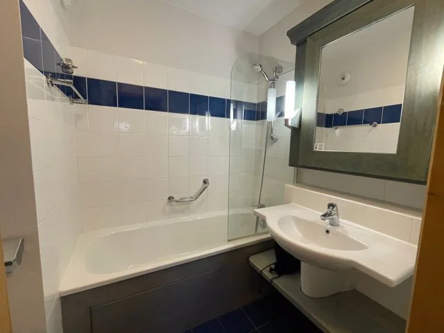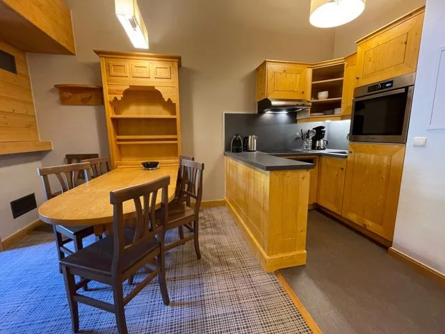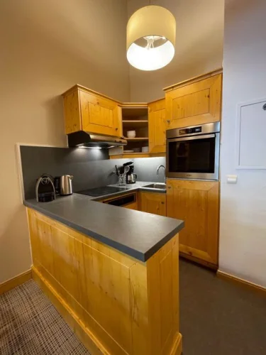 Located in a quiet area with a nice view of the mountains, comprising a kitchen opening onto a living room with a fireplace, 2 bedrooms, one of which has a bathroom, a shower room, a sunny balcony and plenty of storage space. Sold furnished and with a cellar. Ski in and ski out. Rental management, Pierre et Vacances Premium.