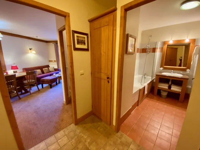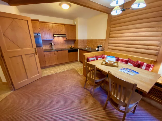 The apartments in Auberge Jerôme benefit from the use of a heated outdoor pool and Jacuzzi, as well as a gym, sauna and steam room. There is also cable TV and free internet access, as well as an owner’s store cupboard within the apartment. Each apartment has an extra storage ‘cave’ in the basement and a ski locker in the boot room. Auberge Jérôme has free allocated parking in the underground car park.