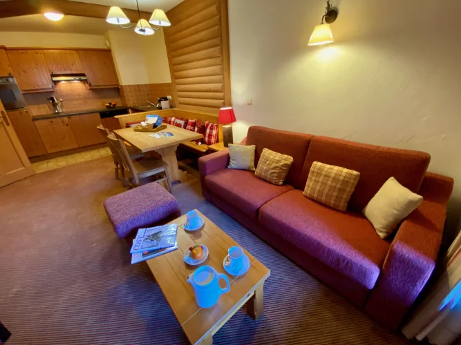 Rare apartment for sale! Spacious flat with a large bedroom and a closed mountain corner in the residence Auberge Jérôme, including a large kitchen open on the living room, a large bathroom and a nice balcony with nice view on the village and the mountains. Sold fully furnished and with a cellar. Ski out and ski back. This property is a Classic Freehold.