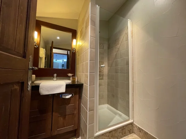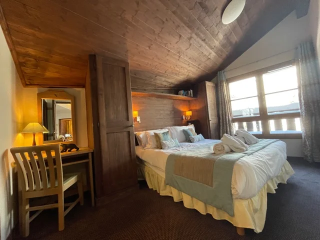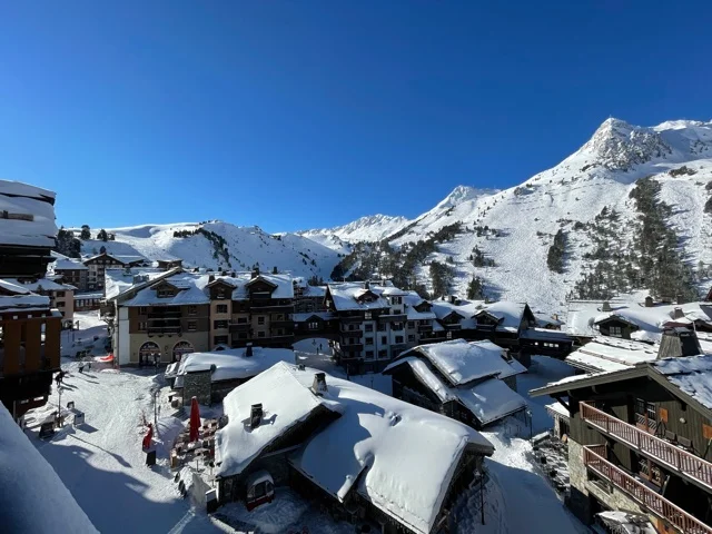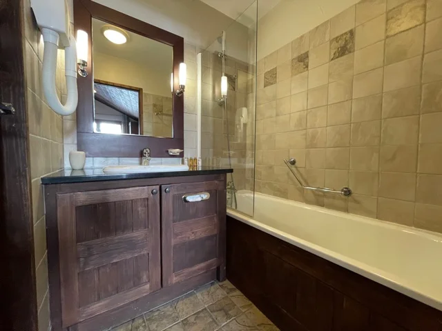This spacious flat on the top floor of the Manoir Savoie residence with magnificent western exposure and mountain views, comprising: two bedrooms, two bathrooms, kitchen opening onto a large bright living room opening onto a large terrace. Sold furnished with a cellar. Access to the wellness areas of the residence. Free access to indoor parking.