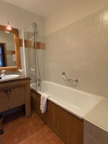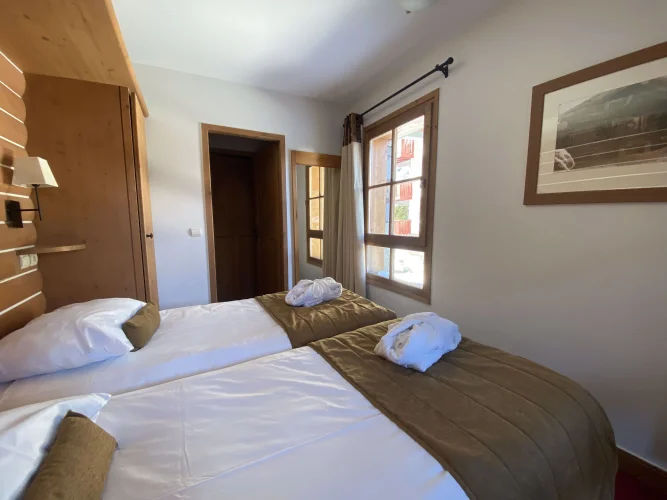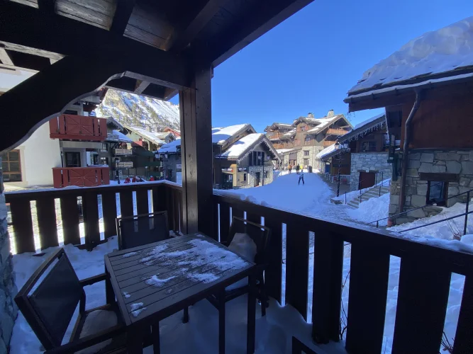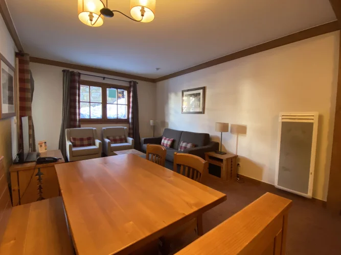 This spacious Ski-in Ski-out apartment includes a large living room with kitchenette, a bedroom, a bathroom and plenty of storage space. From the balcony you can admire a nice view on the village with a South-facing exposure. The flat is sold furnished and with a cellar. Pierre et Vacances premium rental management.