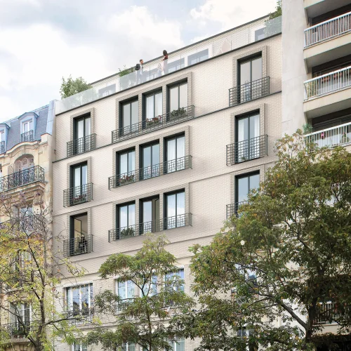 Living in the Carré Parmentier means living in a building that has preserved its classic architecture with its porch, its facade and its Parisian elegance, while enjoying modern apartments with unobstructed views. The Carré Parmentier is the result of a comprehensive rehabilitation and elevation of a building complex built in the early 20th century. The contemporary and discreet architectural idea fits harmoniously into this very Parisian neighbourhood and proposes 4 new floors in the building on the street, raising it to 6 levels. The apartments are designed to offer a certain standard of living, in the spirit of this condominium aiming for excellence.