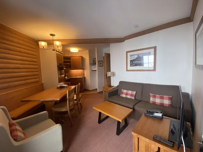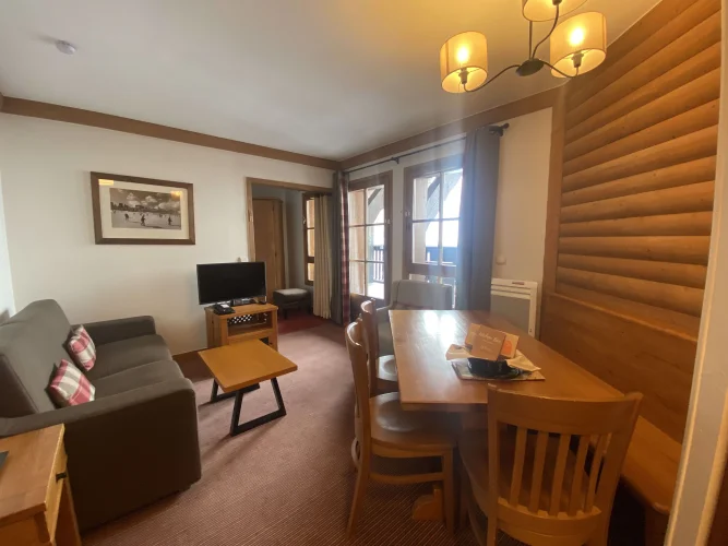 Located in the ski in-ski out residence Auberge Jérôme, this lovely apartment of 38m2 including a superb living room, a large balcony with stunning views, open kitchen, a bedroom and a bathroom.