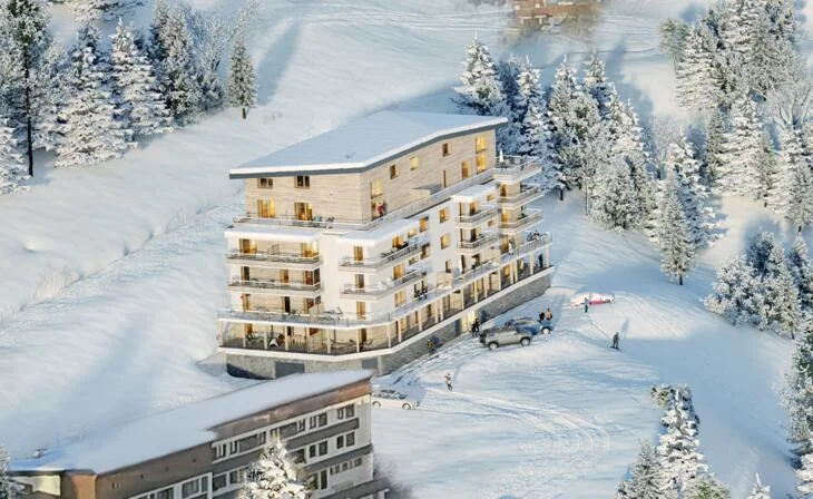 Your future residence will consist of 30 flats ranging from studios to 4-room duplex terraces. Most of the flats, designed with care and elegance, have high quality interior fittings, and most have large outdoor spaces with panoramic views of the mountain to offer precious moments of relaxation. For your convenience, an underground parking space, a ski and bike room are also available.
