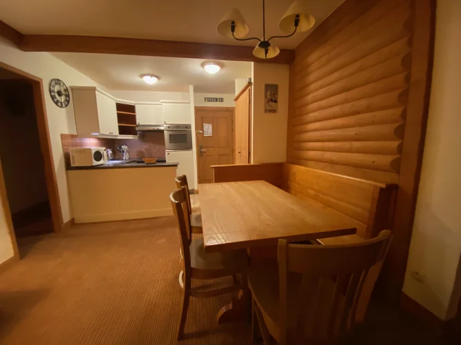 The living room is spacious and bright, with large windows that offer views of the surrounding area and leads to the balcony, which offers a beautiful view of the village.. The kitchen is well-equipped with all the appliances you need to cook for your family and friends. The apartment comes with a cellar in the basement, free parking and two lockers in the boot room which leads out directly onto the slopes. Also enjoy relaxing in the outdoor swimming pool, jacuzzi, sauna and steam room and fitness room.