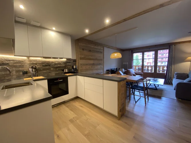 The residence is located in the heart of the village, close to shops, restaurants, and ski lifts. The apartment is sold furnished and equipped, so you can move in and start enjoying your vacation right away.
