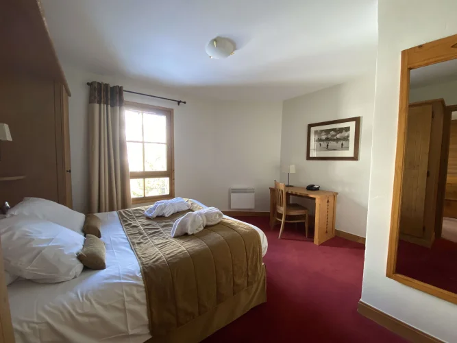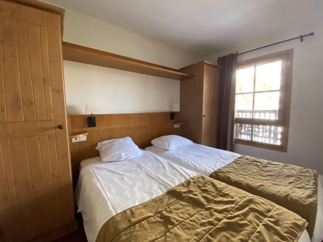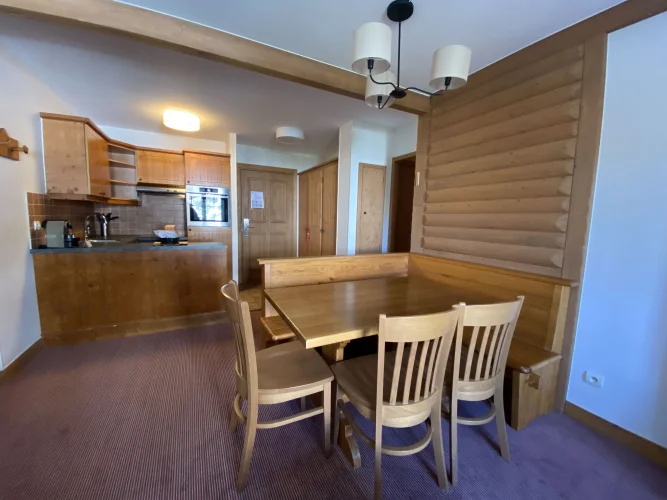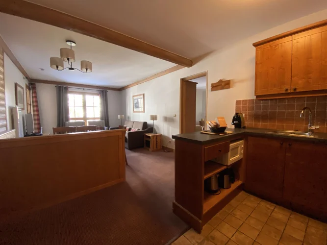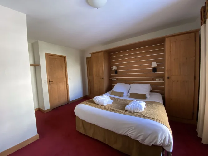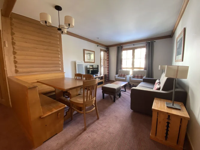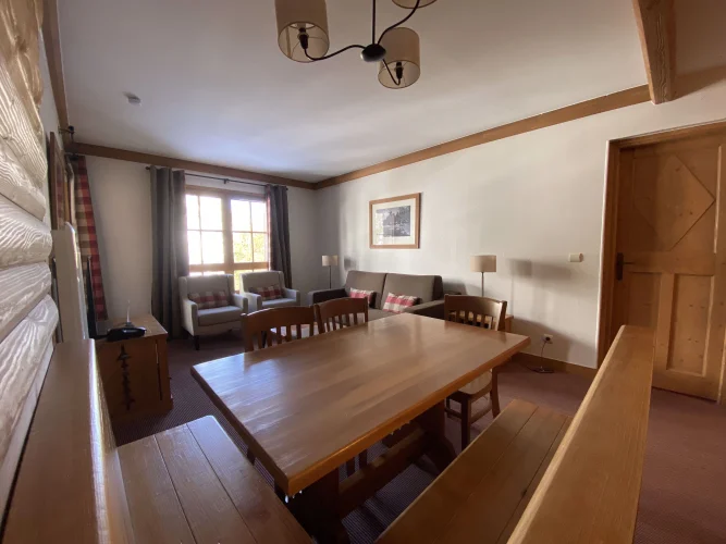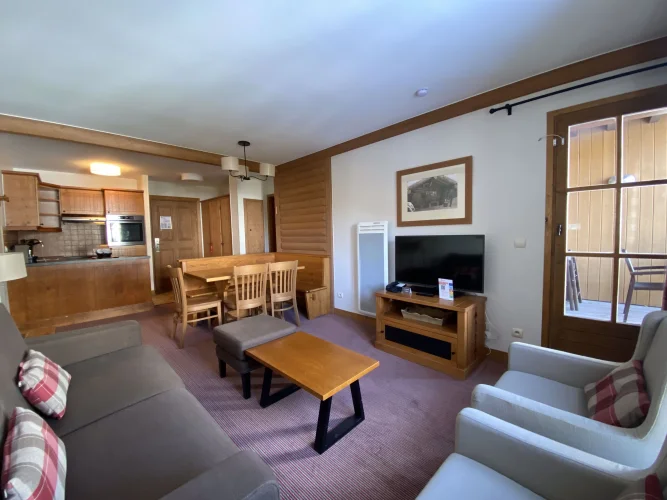 Located in the ski in-ski out Auberge Jérôme, this charming apartment of 60.75 m2 includes a superb living room opened onto a fully equipped kitchen, exceptional North-North / West facing terrace, two bedrooms - one of which en suite, shower room and toilet.