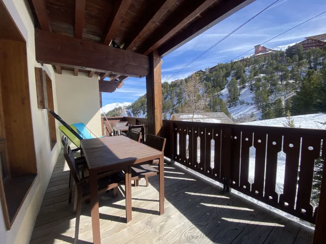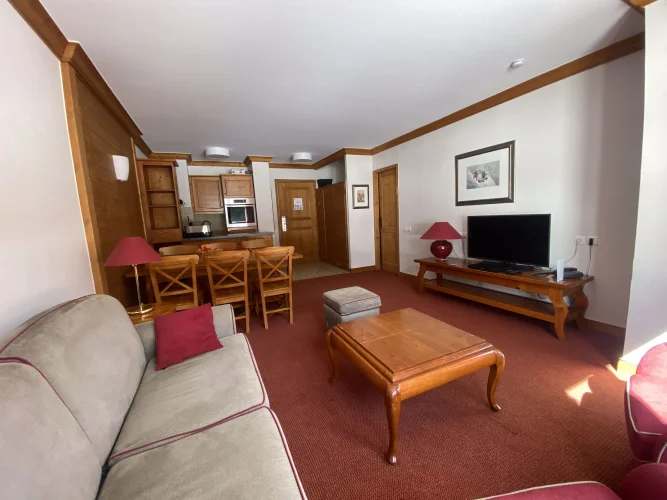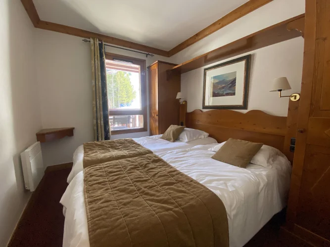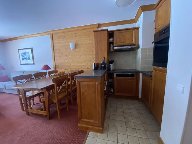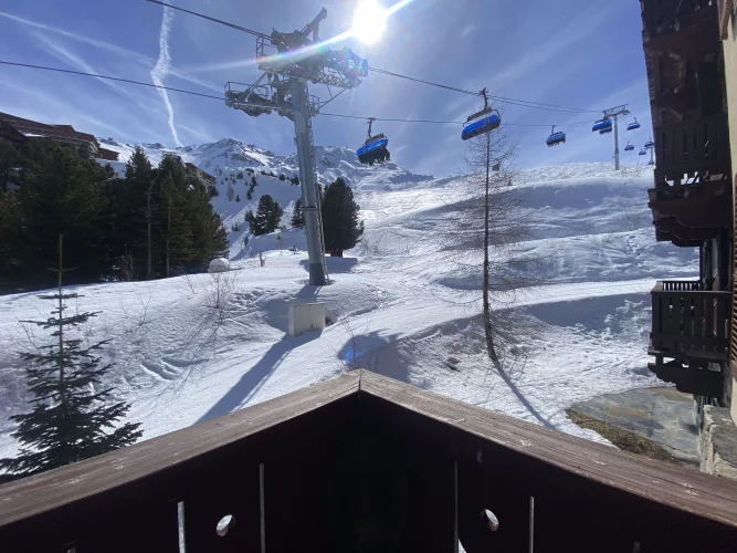 Here is a wonderful example of a lovely 2 bedroom apartment with superbe views and a large sunny balcony. It is located int he residence Prince des Cimes, which benefits from an outdoor and indoor swimming pool. This gorgeous Ski-in Ski-out apartment includes a large living room with kitchenette, an ensuite bedroom, a separate bathroom with shower, and separate toilet and plenty of storage space. From the large balcony (13 sqm) you can admire a nice view on the Mountains and its South-East view of the slopes. The property is sold entirely furnished. The apartment also comes with a cellar (Cave) in the lower levels of the building, and free use of the underground parking. It also has a ski locker allocated to the apartment. It is currently under the leaseback scheme with Pierre et Vacances Premium until the end of April 2025 (only 1 more ski season).