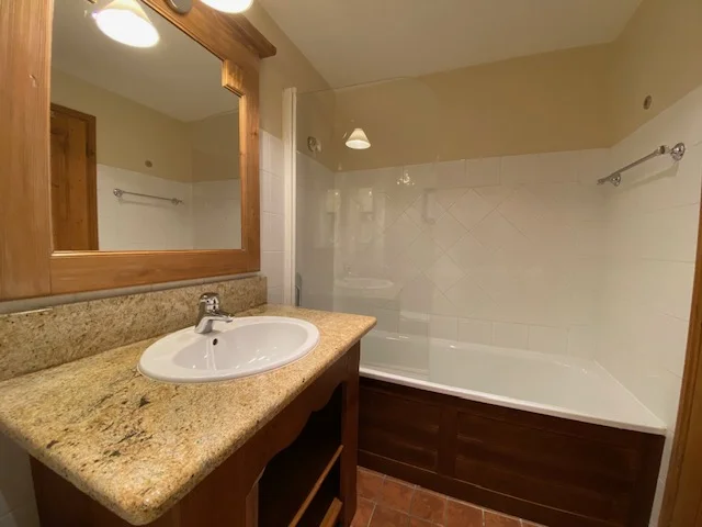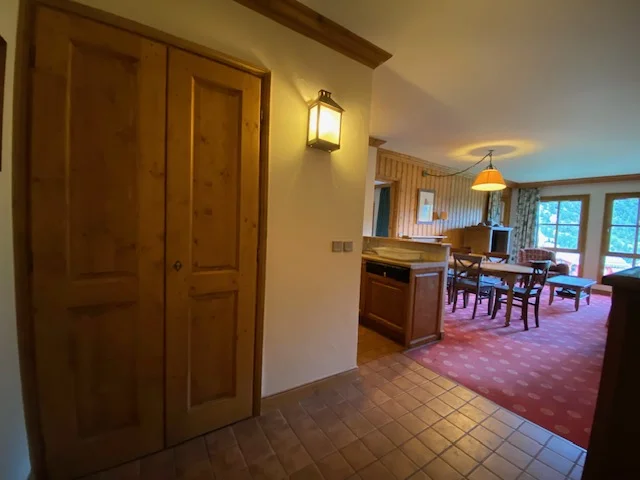 This spacious Ski-in Ski-out apartment includes an entrance with storage opening onto a large living and dining room with kitchenette, an ensuite double bedroom with bath to the left, and to the right of the living room a second double bedroom which has a separate shower room and toilet. You will also benefit from a lovely little balcony. Located in the gorgeous residence of Refuge du Montagnard, on top of the village, this property is directly looking onto the slopes as you can see on the pictures. The flat is sold furnished and also comes with a cellar (Cave) in the lower levels of the building, and free use of the underground parking. It also has a ski locker allocated to the apartment.