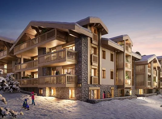 Set in the enchanting heart of Les Gets, this exclusive development offers a collection of luxury apartments housed in an architecturally striking building that marries traditional stone with warm larch wood accents and a gracefully sloping roofline. Surrounded by verdant landscapes, each residence features a private wooden balcony or terrace, providing a secluded retreat with an abundance of summer charm.