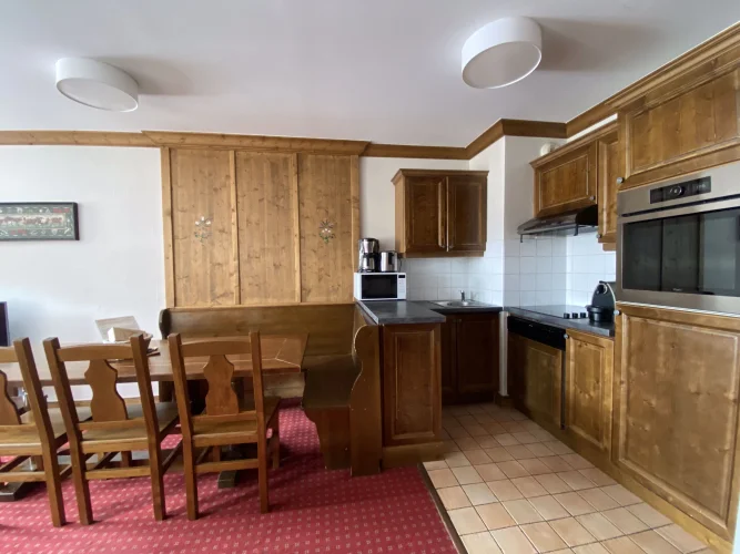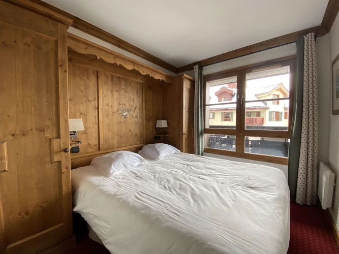 The apartment is sold fully furnished with two cellars, a ski locker, a private closet, and free access to the residence's underground parking.