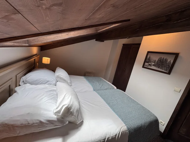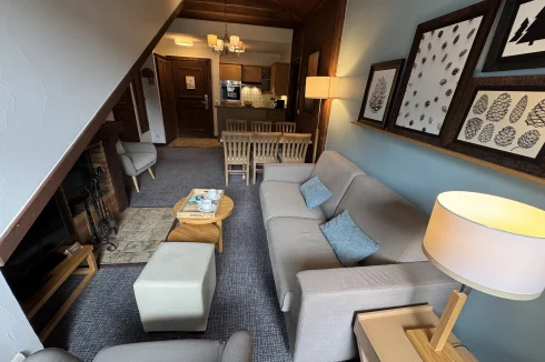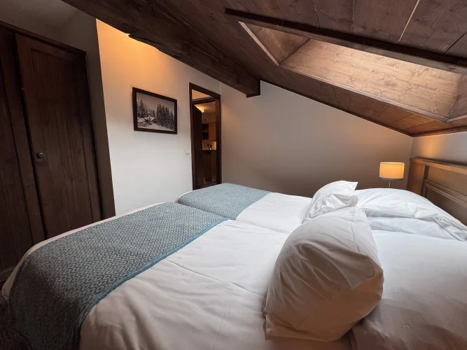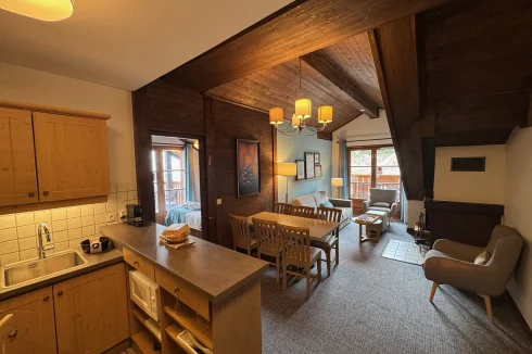Exclusively for sale with Erna Low Property & Les Arcs Immobilier, we present to you a fabulous 2-bedroom apartment on the top floor of the Manoir Savoie residence, with double exposure to the north (view of Mont Blanc) and east, featuring a bathroom in the master bedroom and a shower room with separate toilet, a lovely cozy living room with a fireplace to give you that chalet ambiance. This apartment is sold fully furnished and equipped, and under a commercial lease with Pierre et Vacances Premium until the end of April 2028.Do not hesitate to contact us and come visit – you will be charmed!