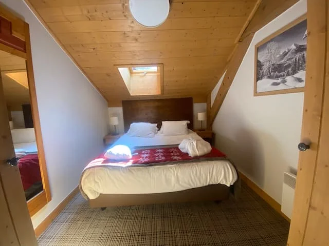 Located in the Sources de Marie residence, this charming 3-room apartment features a beautiful living room with a fireplace, open kitchen, terrace facing southeast with a lovely unobstructed view of the mountains and the village, 2 bedrooms including one very spacious, a bathroom, and a toilet. Situated under the eaves, it benefits from a larger floor area. Sold furnished with a cellar, ski locker, and free access to the underground parking. Enjoy also the indoor jacuzzi area, sauna, and gym, as well as access to the wellness area of the Auberge Jérôme residence via the footbridge, with its heated outdoor pool. You also have direct access via the elevator to the Deep Nature SPA. This property is under Premium management until April 2027.