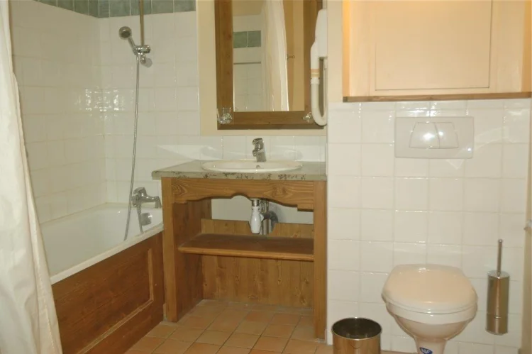 This large first floor 1 bedroom apartment in Jardin de la Cascade has a habitable living area of approx. 40m2 consisting of a twin bedroom with a separate bathroom and WC. The living room has a pull out sofa bed allowing the apartment to sleep four in comfort, with the separate bathroom facilities making for easy access for both rooms. The kitchen area is well equipped with modern appliances and is fully fitted, and the dining table has seating for four. From this room, there is an internal door communicating with apartment 1060, which is also for sale. Combined, these apartments would give you a surface area of over 75m2 and sleep up to eight guests. The balcony has East facing views of the charming alpine mountainside up to Arc 2000.