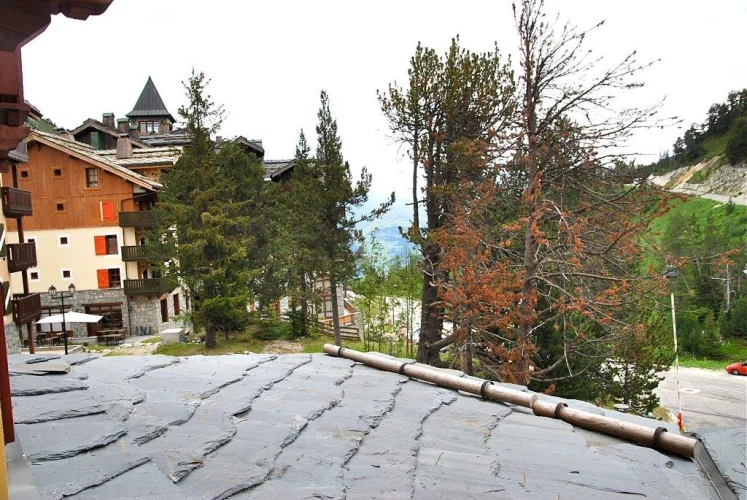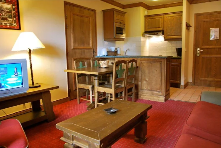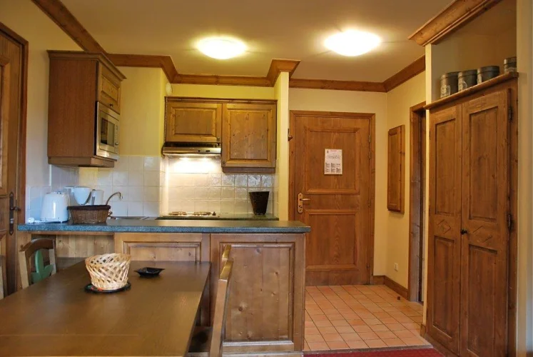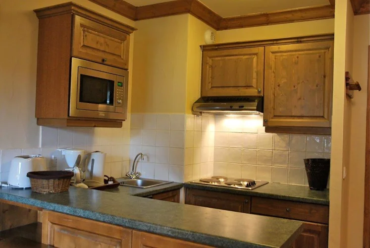This cosy first floor 1 bedroom apartment in Jardin de la Cascade has a habitable living area of approx 36m2 consisting of a twin bedroom with a separate bathroom and WC. The living area has a pull out sofa bed, allowing the apartment to sleep four in comfort, with the separate bathroom facilities making for easy access from both rooms. The large kitchen area is ‘U’ shaped and well equipped with fully fitted modern appliances. The dining table has an 'L' shaped bench seating and chairs. The apartment's balcony runs along the entire length of the living room and bedroom and has lovely East facing views of the alpine mountainside up to Arc 2000.