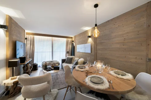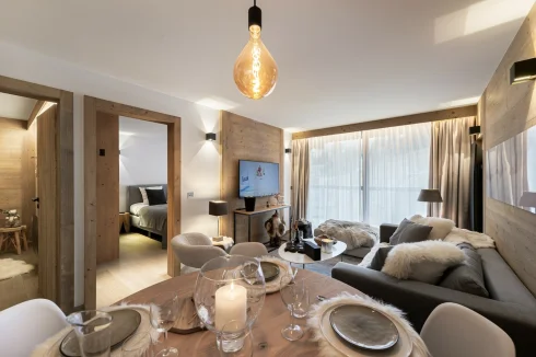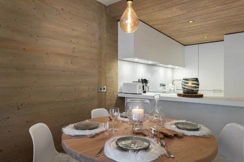 Apartment located in the heart of Courchevel village, on the 6th floor of a high-end residence, with quality materials, the property is composed of an equipped kitchen open onto the living room and a dining room. A double bedroom, a mountain corner with two bunk beds and a shower room complete this apartment and can accommodate up to 4 guests, ideal for families.The property is sold fully equipped and furnishedParking is available at an additional cost.